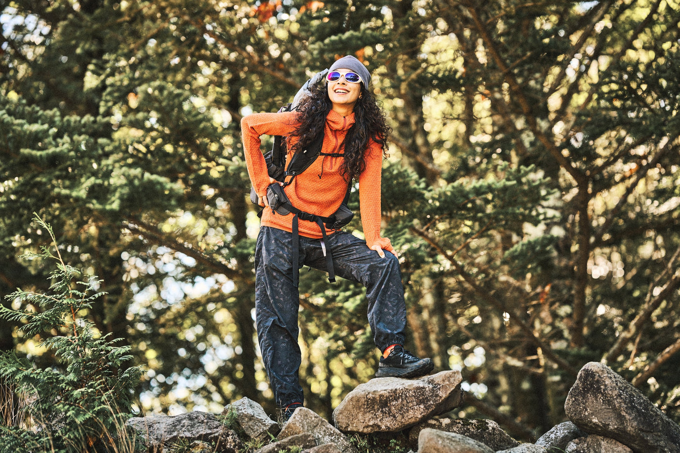 メリノウールと再生ポリエステルで作られた 素早く熱気を放出できるハーフジップフーディー