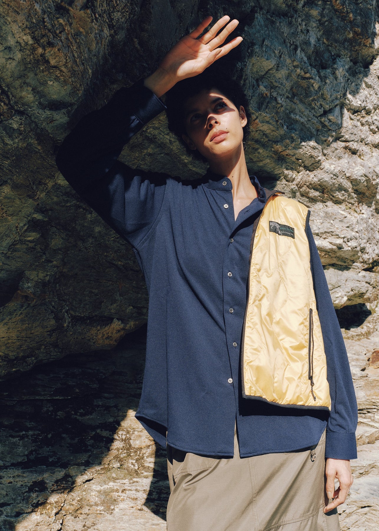 リバーシブルで着こなしを楽しみつつ、2種類の再生ポリエステルを通してサスティナブルを意識するきっかけになれば嬉しいです。